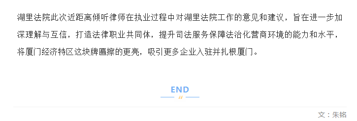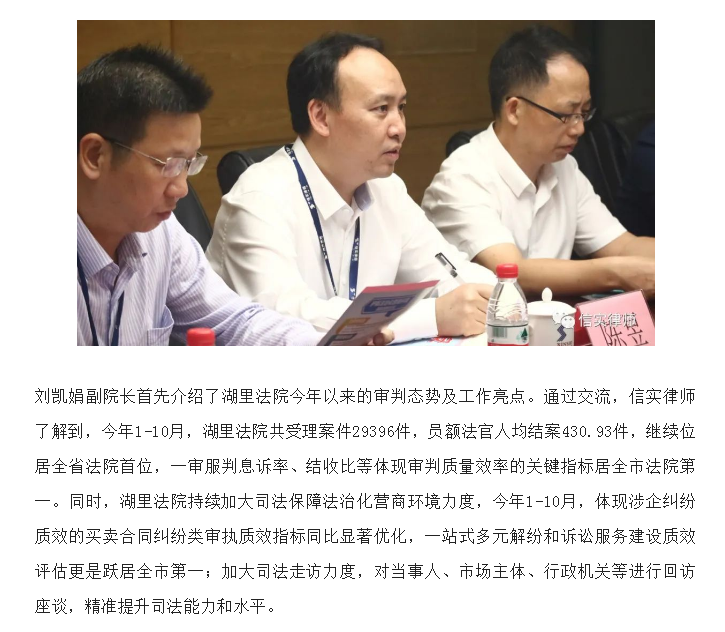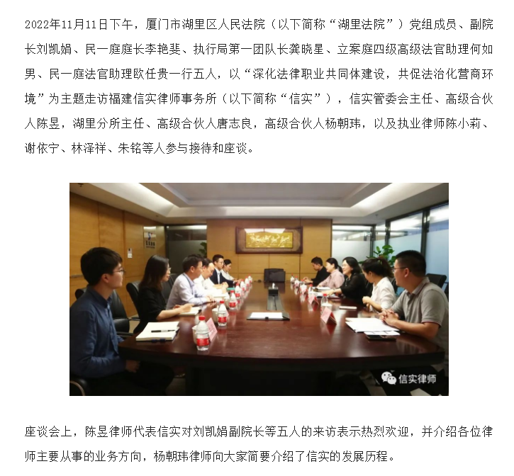 厦门市湖里区人民法院党组成员、副院长刘凯娟率队走访信实并进行座谈交流