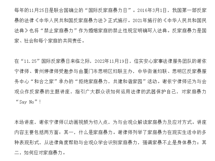 国际反家暴日,信实律师在行动!