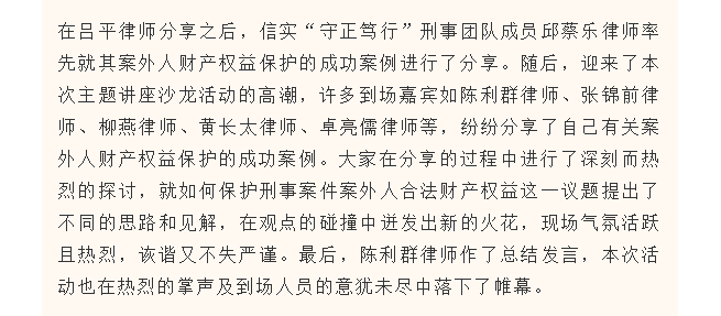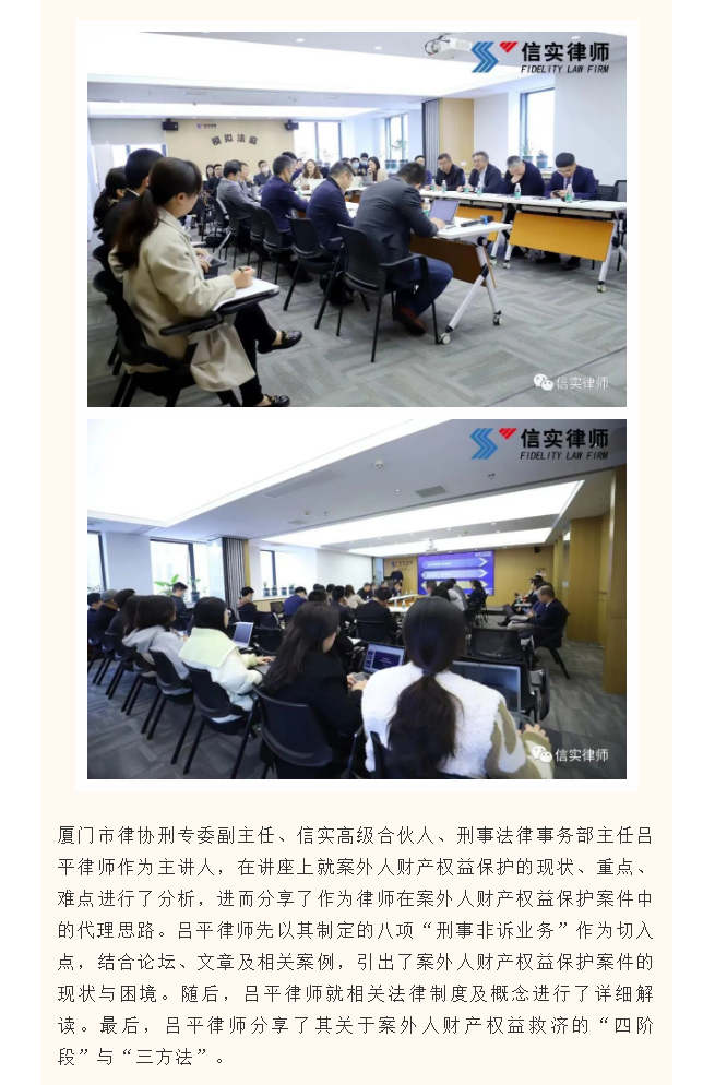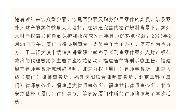 信实与厦门市律协刑专委联合举办《刑事案件案外人财产权益救济的代理思路》主题讲座沙龙活动