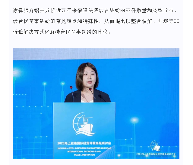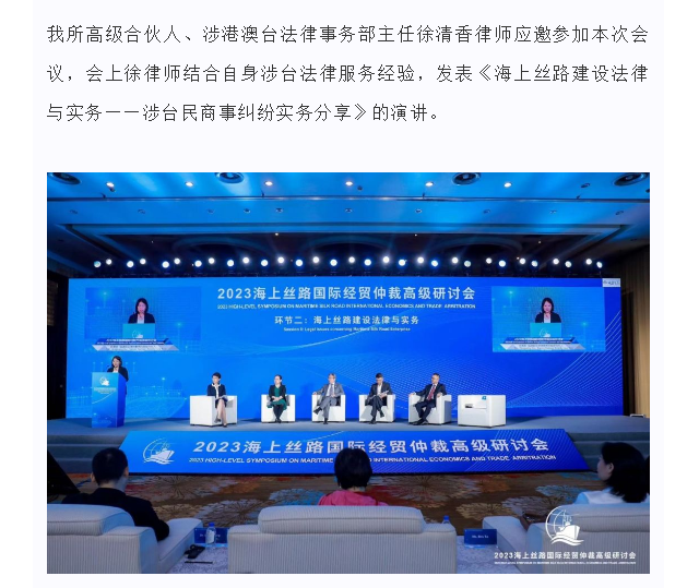 信实高级合伙人徐清香律师应邀参加2023年海上丝路国际经贸仲裁高级研讨会
