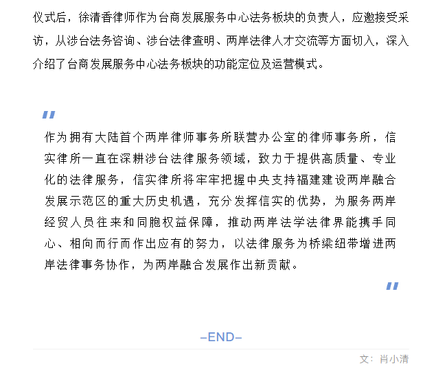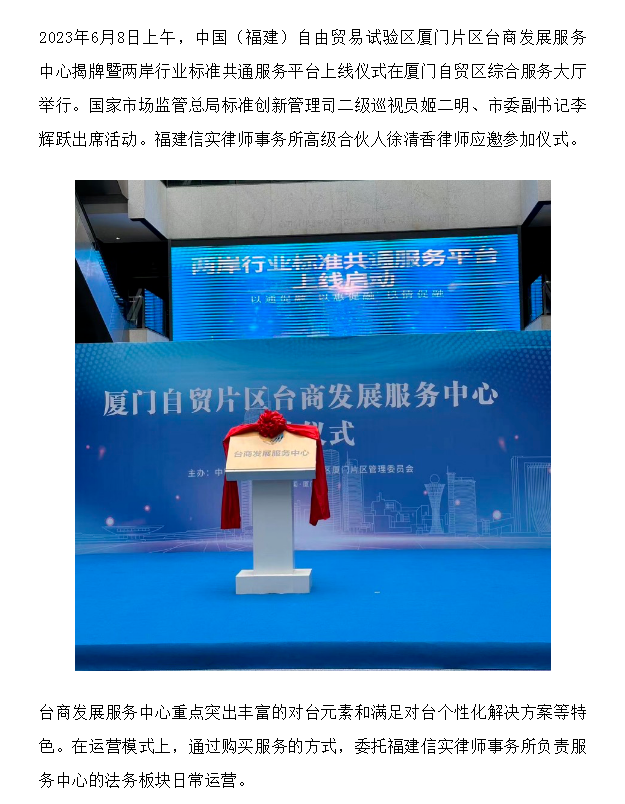 信实律师助力厦门自贸区台商发展服务中心法务板块落地