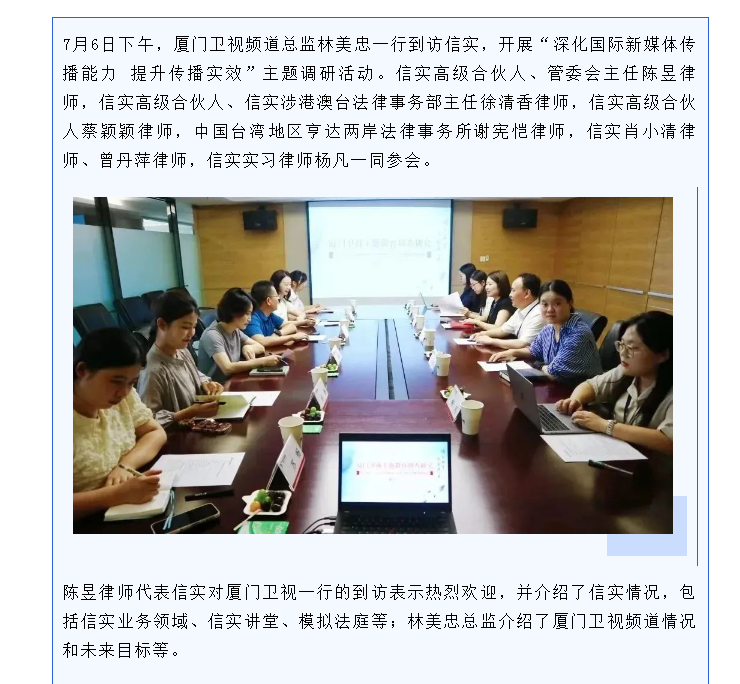 厦门卫视一行到访信实开展主题调研活动