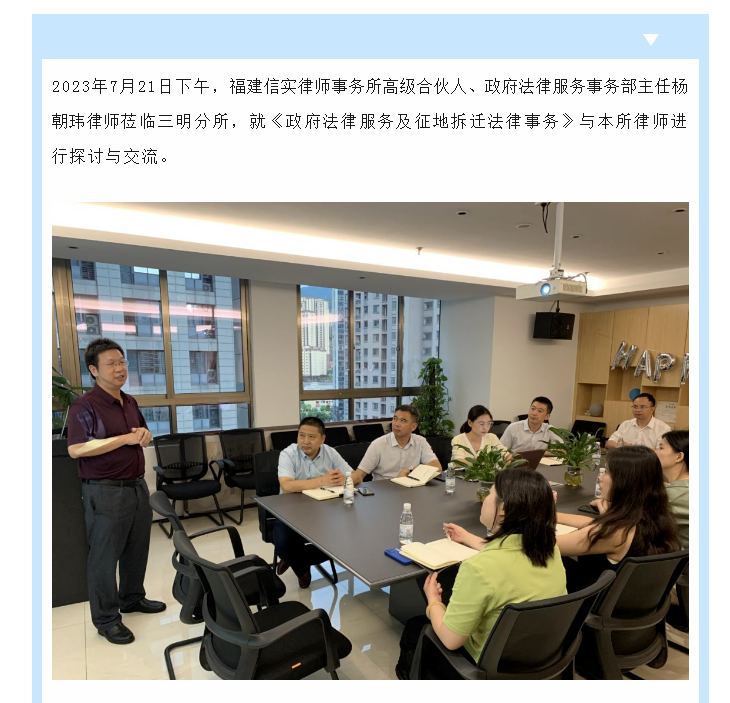 《政府法律服务及征地拆迁法律事务》——信实高级合伙人杨朝玮律师为三明分所律师授课