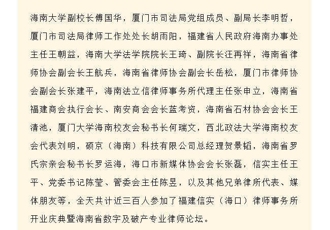福建信实(海口)律师事务所开业庆典暨海南省数字及破产专业律师业务论坛在海口隆重举办