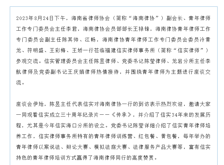 海南省律师协会一行莅临信实参观交流