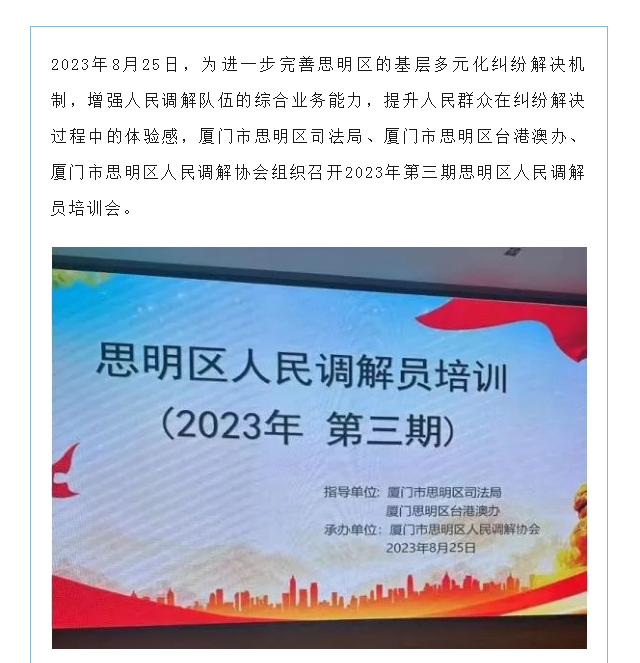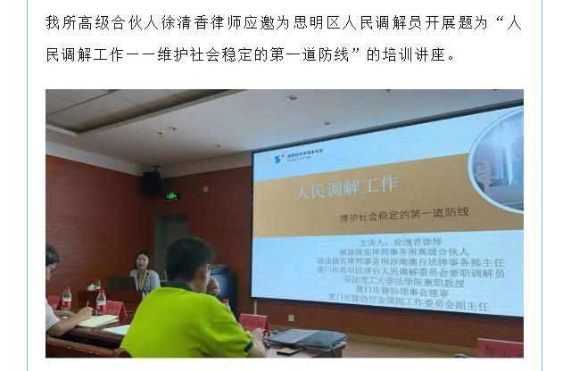 信实高级合伙人徐清香律师应邀为思明区人民调解员开展培训讲座
