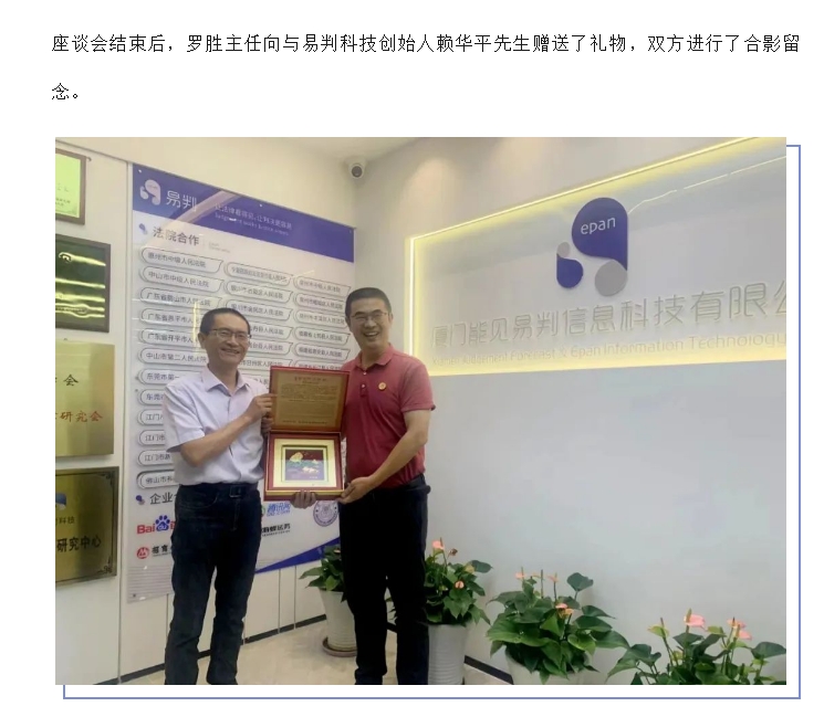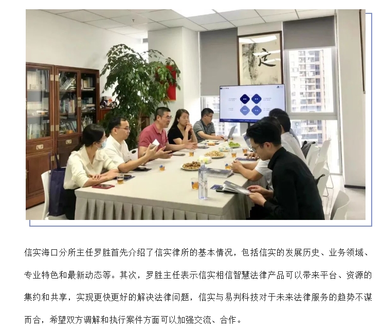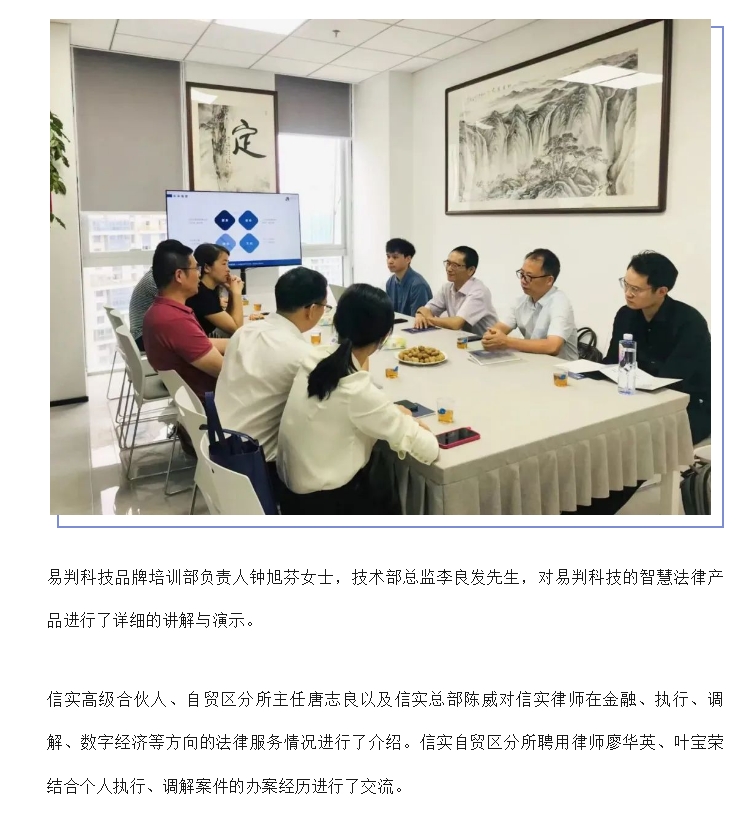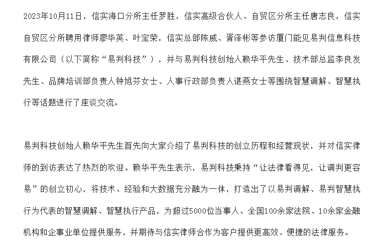 信实律师赴厦门能见易判信息科技有限公司开展座谈交流