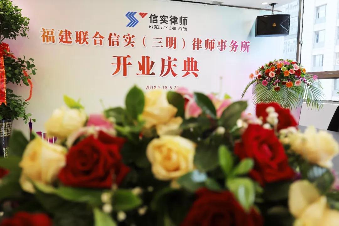 2018年5月18日,福建联合信实(三明)律师事务所(简称“三明分所”)正式开业,成为福建联合信实律师事务所(简称“信实”)的第9个分支机构、第6个分所。三明分所位于福建省三明市梅列区汇鑫大厦14层,当日的开业庆典在三明分所隆重举行。