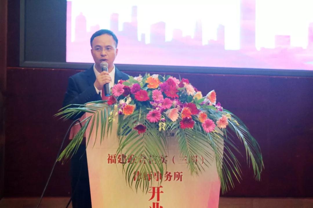 在开业庆典上,三明分所杜元会律师作为主持人,着重介绍了三明分所成立的背景和历程。