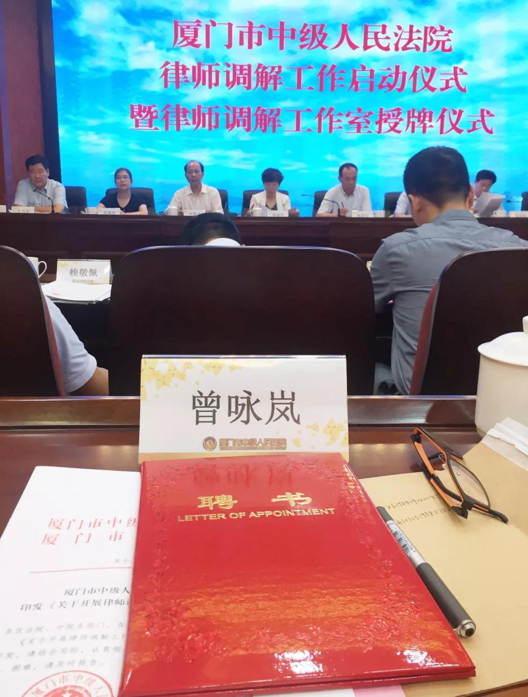 2018年7月3日上午,福建联合信实律师事务所(简称“信实”)曾咏岚律师作为律师调解员代表之一,参加了厦门市中级人民法院举行的律师调解工作启动仪式暨律师调解工作室授牌仪式。