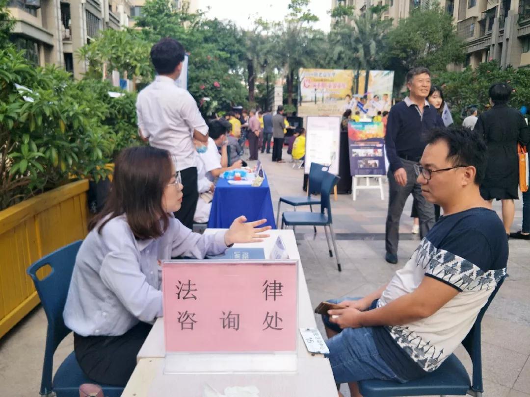 2018年10月19日,信实党员律师杨向东参与兴隆社区“最美夕阳红·温馨兴隆人”重阳节系列活动。台上由社区老人组成的演员歌舞演出不断,其乐融融,台下由各大爱心单位为社区老人举办的公益活动丰富多姿,爱心横溢,信实律师提供的现场法律咨询也为现场增添了一抹靓丽的色彩。