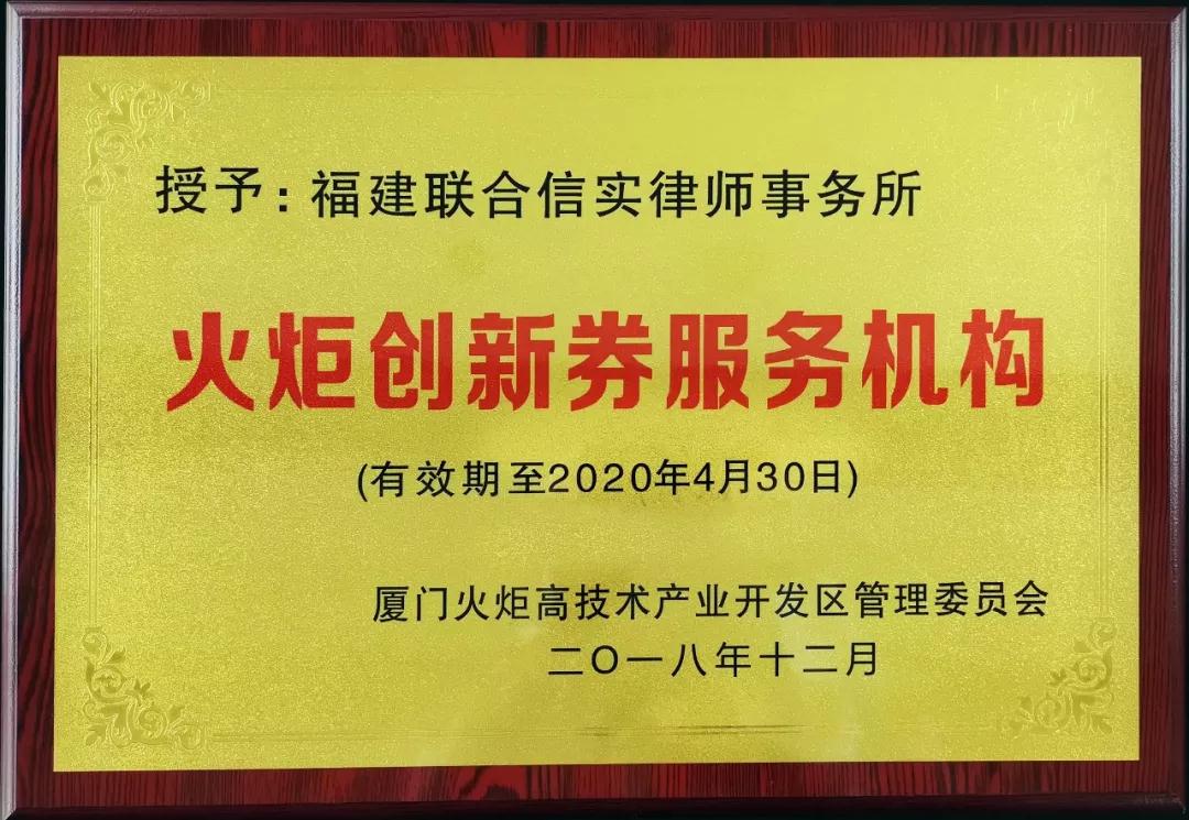 经过申报和多轮审核,福建联合信实律师事务所(以下简称“信实”)通过专家评审被认定为“火炬创新券服务机构”。在科技服务联盟大会上,厦门火炬高新区管委会正式授予信实“火炬创新券服务机构”。作为火炬创新券受理单位,信实在“火炬创新券服务平台”等公布的服务事项将纳入火炬创新券支持范围,为火炬高新区内企业提供更优惠更专业的创新服务。