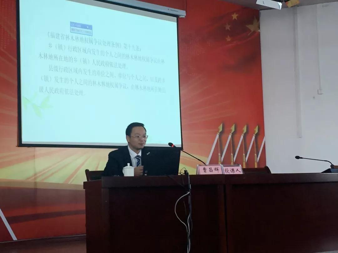 次日下午,曹昌辉律师先通过“概述、分类与特点、法律规定”三个方面讲述我省常见的林木林地权属争议类型与解决办法,又结合自己二十余年的工作经验,讲述纠纷调解的依据以及调解协议制定与签署的注意事项。