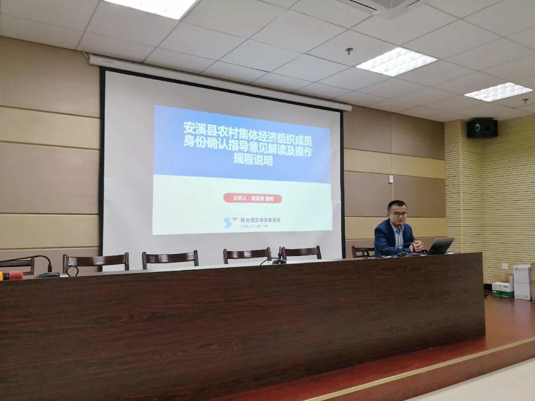 为稳步推进农村集体产权制度改革工作,安溪县人民政府于2019年1月11日制定了《安溪县农村集体经济组织成员身份确认指导意见》(安政办〔2019〕8号)。为正确指导各乡镇开展成员身份确认工作,确保成员身份确认工作合法、有序的稳步推进,安溪县农业农村局邀请信实农业农村法律事务部泉州团队协助举办农村集体经济组织成员身份确认政策解读暨业务培训会。