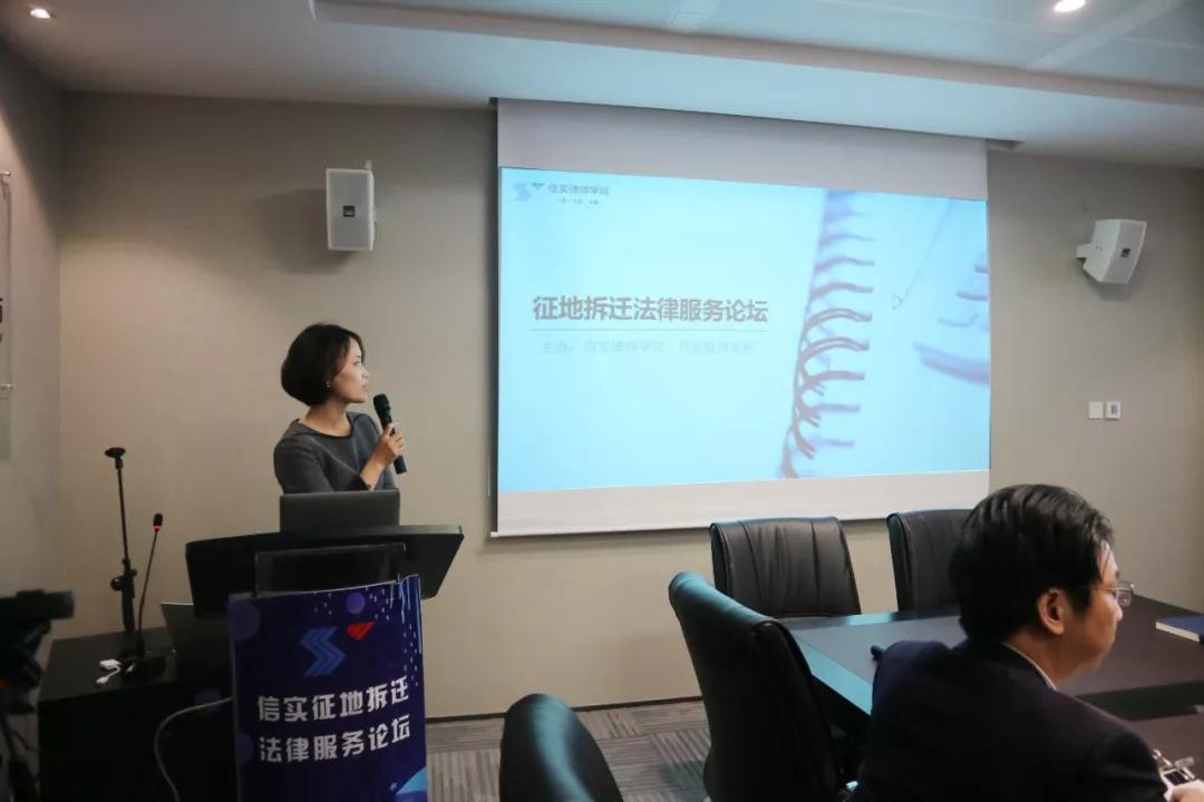 信实高级合伙人杨朝玮律师作了《征收补偿与法律风险防范》的主题演讲,杨律师通过分享征收补偿项目涉及的法律法规和实践中的典型事例,讲解征收补偿实务中的法律风险以及其中的复杂性、法律性、政策性、社会性和群众性。