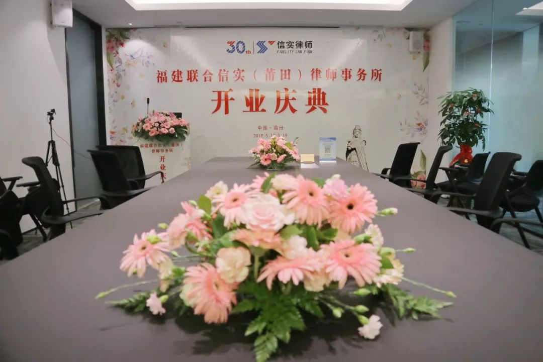 2019年5月17日,福建联合信实(莆田)律师事务所(简称“莆田分所”)正式开业,成为福建联合信实律师事务所(简称“信实”)的第10个分支机构、第9个分所。莆田分所位于福建省莆田市荔城区凯天国际大厦11层,当日的开业庆典在莆田分所隆重举行。