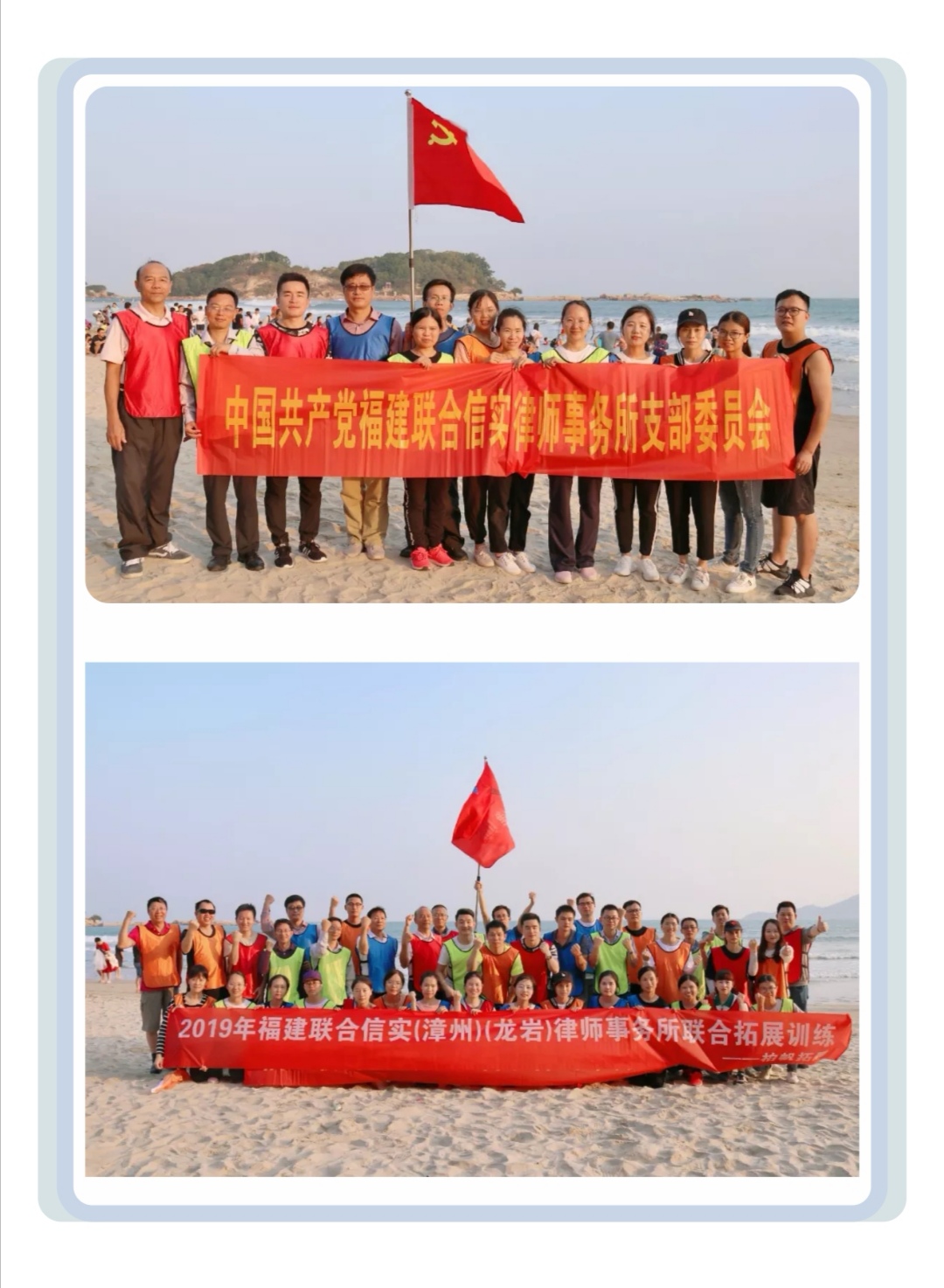 “今天天气好晴朗,处处好风光,好风光......这也歌唱,那也歌唱,风儿也唱着,水也歌唱……”,为了进一步增进所际交流、促进党员与群众沟通,培养团队团结协作精神,在福建联合信实(龙岩)律师事务所党支部与福建联合信实(漳州)律师事务所党支部的大力组织下,2019年10月19日-20日,信实龙岩分所与信实漳州分所近40名律师正式开启为期2天的漳州东山岛素质拓展活动与爱国主义教育之旅,一路欢乐作伴,感动相随。