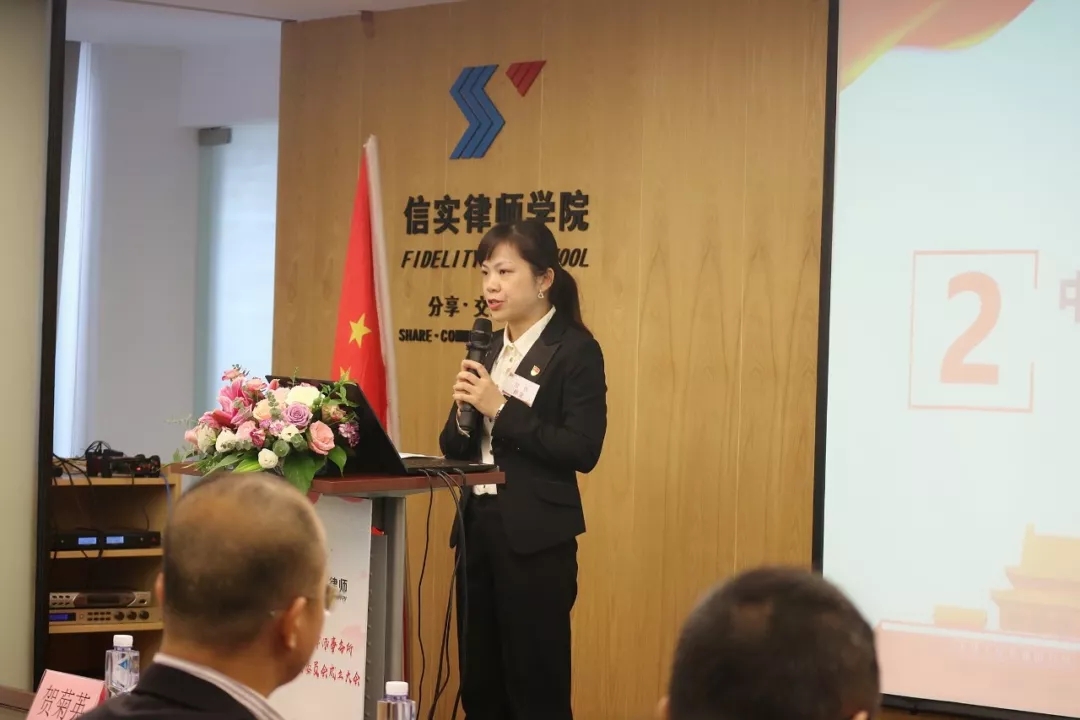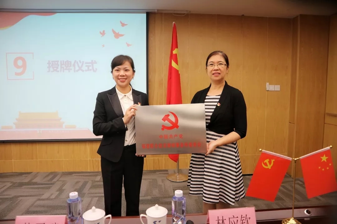 市司法局党组成员、副局长、中共厦门律师行业党委书记贺菊英同志为中共福建联合信实律师事务所委员会授牌,委员代表陈莹同志接受授牌