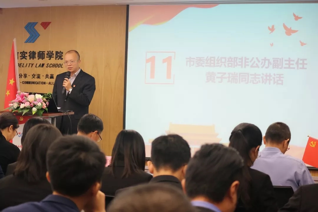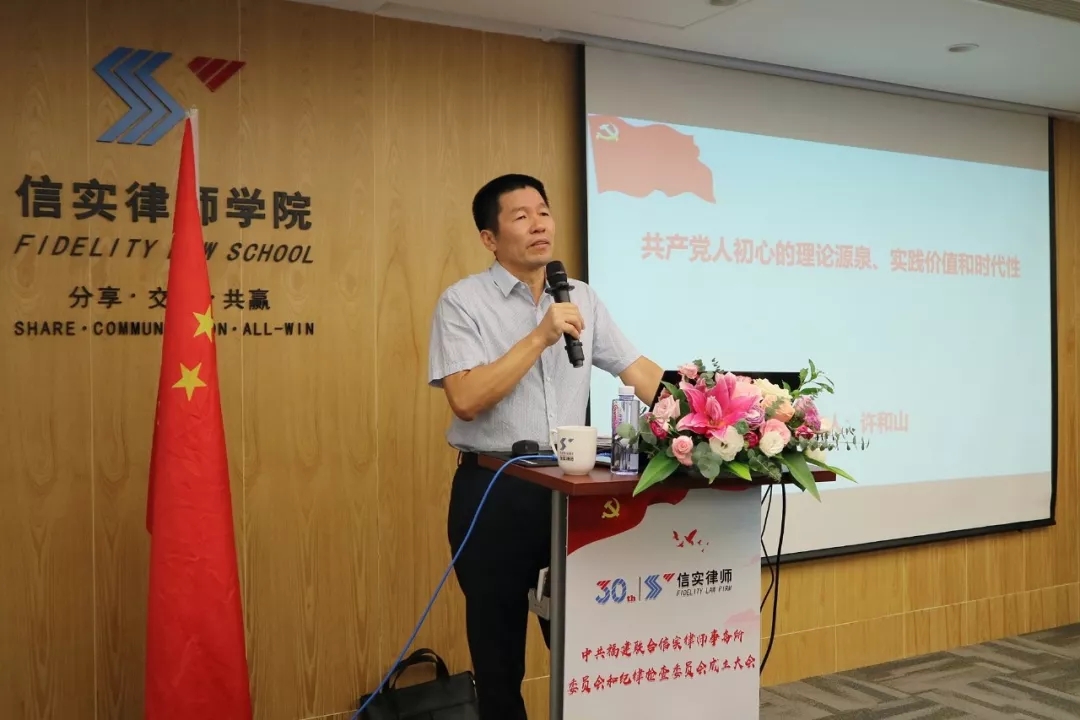 成立大会的最后,厦门大学法学院党委书记、厦门城市党建学院教授、厦门大学马克思学院党建工作研究中心主任许和山教授到场为全体信实党员带来了一堂生动的党课——《共产党人初心的理论源泉、实践价值和时代性》。许教授长期从事党建研究工作,有着扎实的理论功底和丰富的基层党建经验,其在授课中理论结合实际,深入浅出,好评如潮。