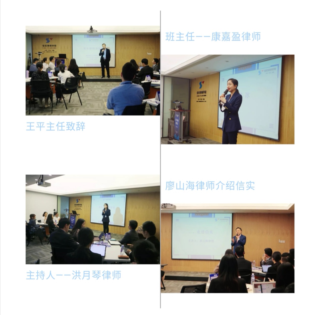 开幕式由信实律师学院副院长洪月琴律师主持。信实王平主任在开幕式上致辞,希望青年律师能够通过此次培训提升执业技能和执业风险防范能力,并对青年律师寄予厚望!信实高级合伙人廖山海律师以信实理念为核心带领青年律师走进信实、了解信实,同时希望青年律师要把律师作为事业而不是职业。最后,洪月琴律师介绍了信实培训制度以及信实青年律师培养计划。