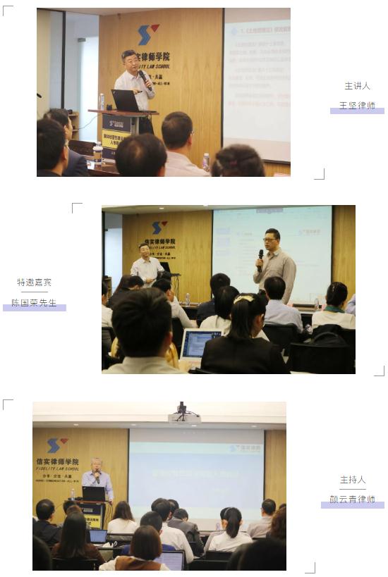 福建省律协房地产专业委员会副主任、厦门市律协房地产专业委员会副主任、信实高级合伙人王坚律师担任主讲人,厦门市自然资源和规划局法规处处长陈国荣先生担任特邀嘉宾,厦门市律协房地产专业委员会主任、福建远大联盟律师事务所高级合伙人颜云青律师担任主持人。