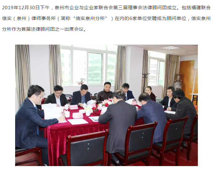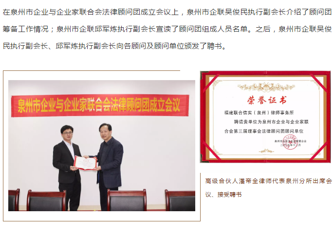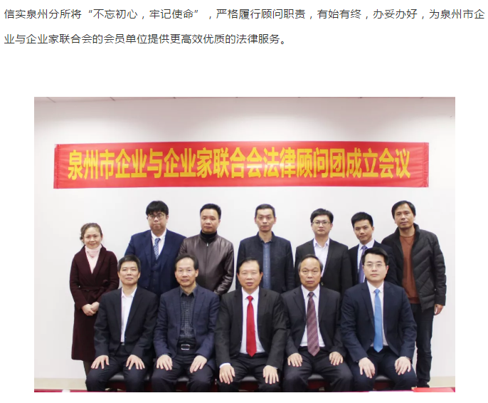信实泉州分所受聘担任泉州市企业与企业家联合会首届法律顾问团顾问单位|信实动态·泉州分所