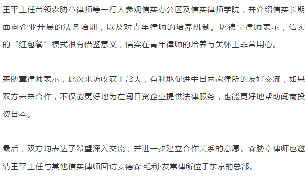 誠意を持って、ウィンウィン——日本安德森·毛利·友常律师事务所律师访问信实|信实动态