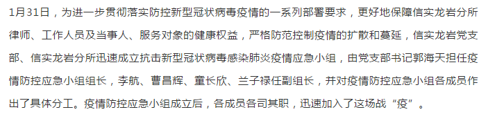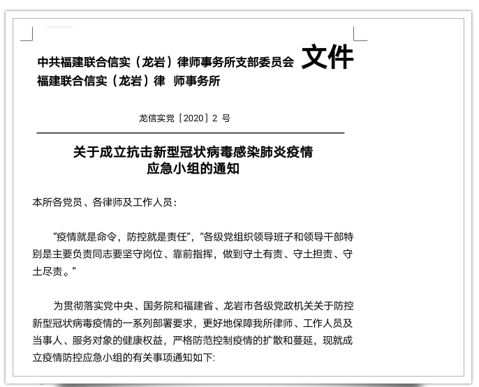 抗击疫情,信实在行动|信实动态·龙岩分所