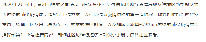鲤城区司法局与信实泉州分所联合编创鲤城区社区疫情防控法律知识小手册 | 信实动态·泉州分所