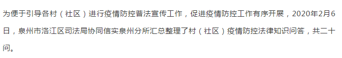 洛江区司法局协同信实泉州分所汇总整理村(社区)疫情防控法律知识问答 | 信实动态·泉州分所
