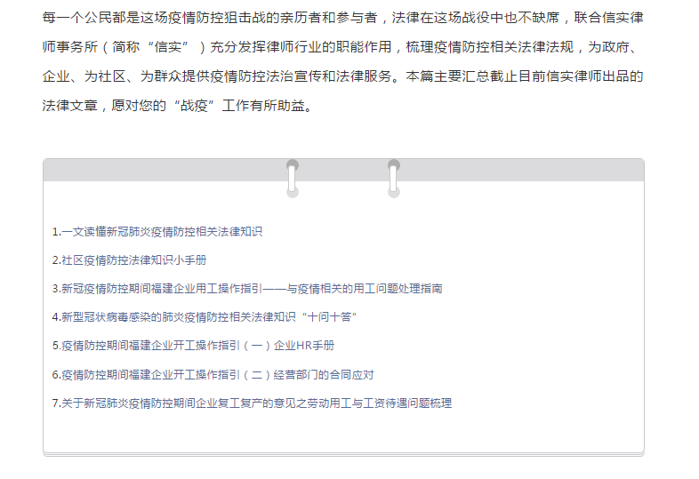 应对疫情法律干货汇总 | 信实动态