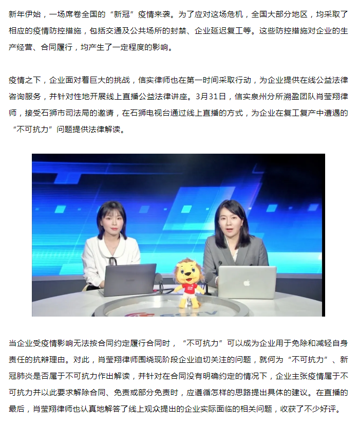 石狮市司法局邀信实律师解读“不可抗力”,助力企业复工战“疫” | 信实动态