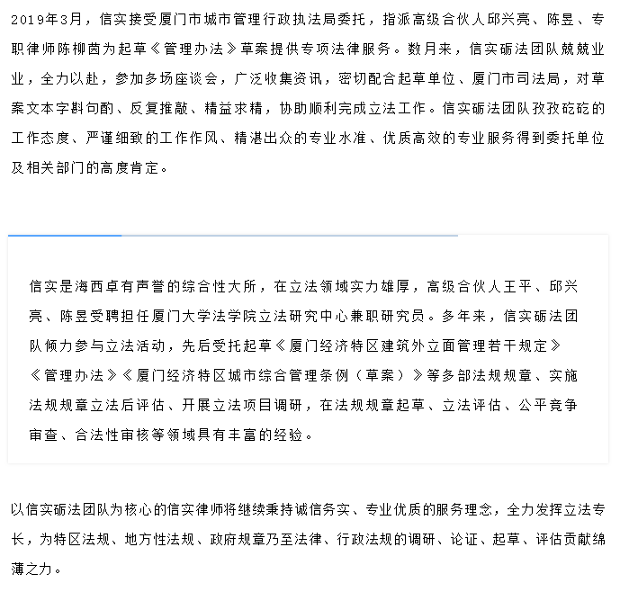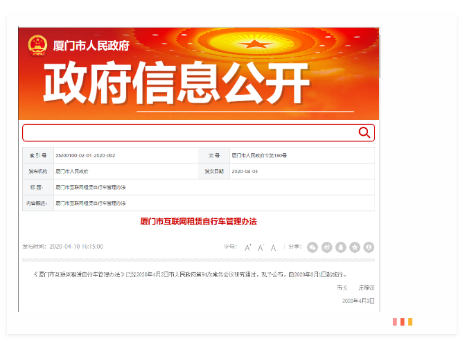 信实砺法团队参与起草的《厦门市互联网租赁自行车管理办法》将于2020年6月1日起施行 | 信实动态·政府法律服务事务部
