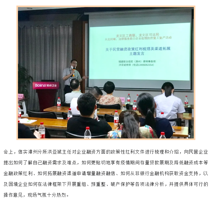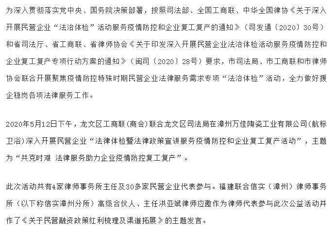 信实律师参与龙文区民营企业法律服务需求专项“法治体检”活动 | 信实动态·漳州分所