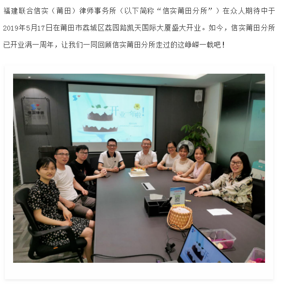 前景可待,未来可期―记信实莆田分所开业一周年 | 信实动态 · 莆田分所