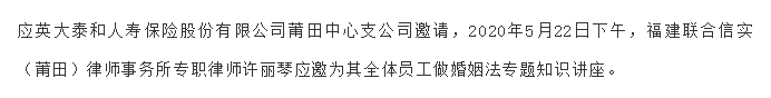 法治护航,家庭和谐―信实许丽琴律师应邀往英大泰和人寿保险股份有限公司莆田中心支公司做婚姻法专题知识讲座|信实动态·莆田分所