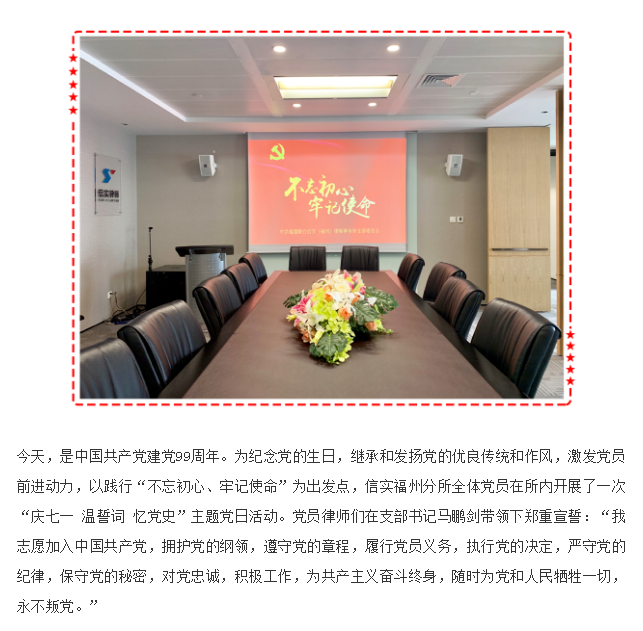 信实福州分所党支部举行 “庆七一 温誓词忆党史”主题党日活动 | 信实动态·福州分所