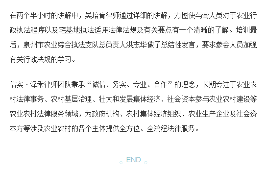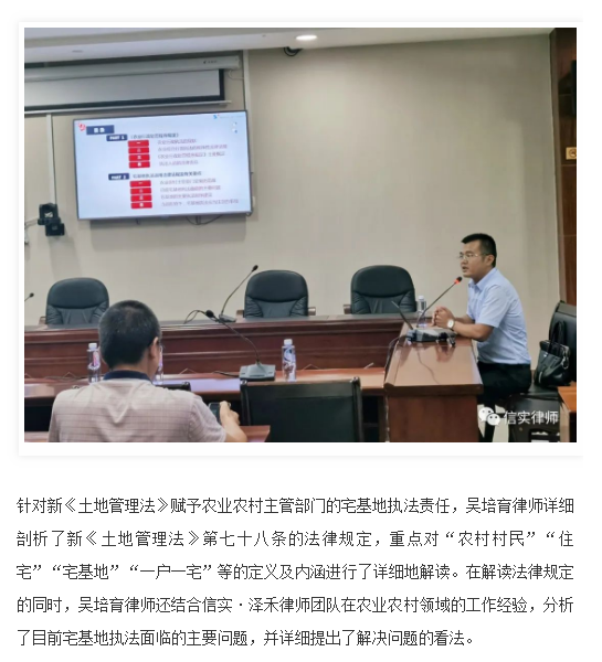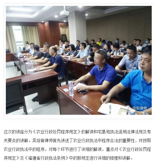 吴培育律师应邀为泉州市农业系统开展宅基地执法工作法律培训 | 信实动态·泉州分所