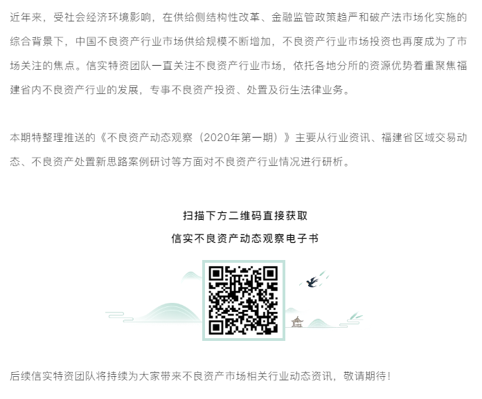 信实不良资产动态观察(2020年第一期)| 信实动态·信实特资团队