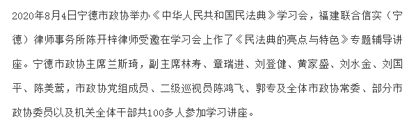 宁德市政协举办民法典学习会,陈开梓律师受邀作《民法典的亮点与特色》专题辅导讲座|信实动态·宁德分所
