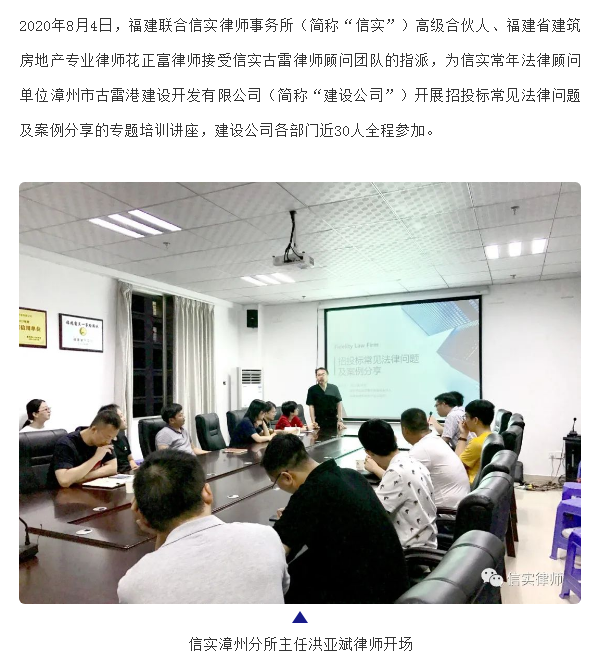 信实古雷律师顾问团队为漳州市古雷港建设开发有限公司开展招投标常见法律问题及案例分享专题培训讲座|信实动态·漳州分所