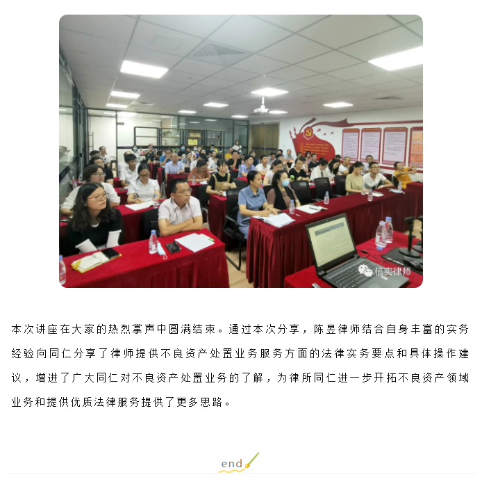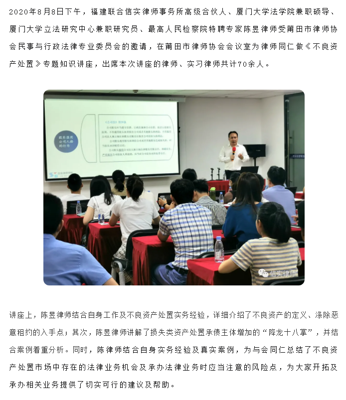信实高级合伙人陈昱律师应邀往莆田市律师协会做《不良资产处置》专题讲座|信实动态·莆田分所