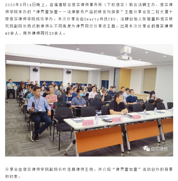 “律界壹加壹——法律服务产品的研发与探索”主题分享会首秀礼成|信实动态·信实律师学院