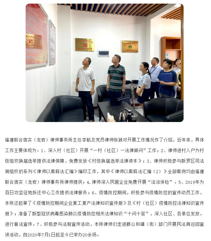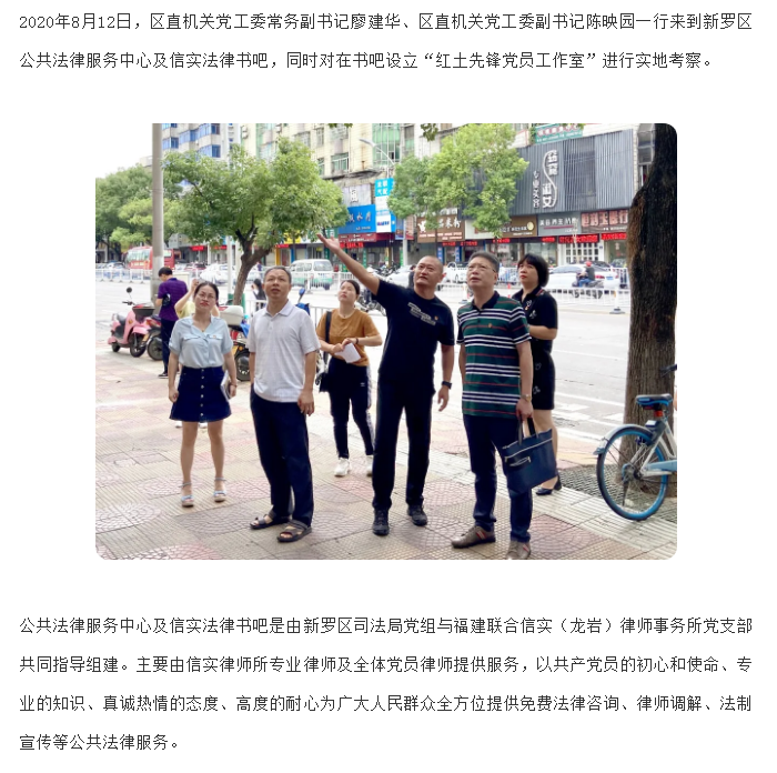 新罗区区直机关党组书记一行到新罗区公共法律服务中心及信实法律书吧实地考察工作|信实动态·龙岩分所