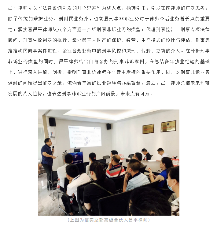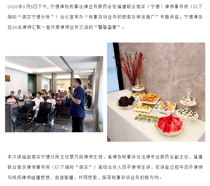 信实宁德分所圆满成功举办“刑事非诉业务的思索及研发推广”讲座|信实动态·宁德分所