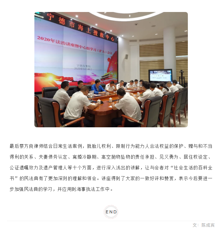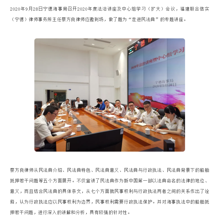 蔡方良律师应邀为宁德海事局开展“走进民法典”专题讲座|信实动态·宁德分所