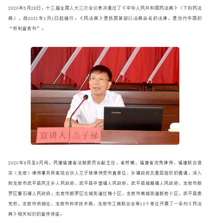 兰子禄律师深入区县开展《民法典》宣讲活动|信实动态·龙岩分所