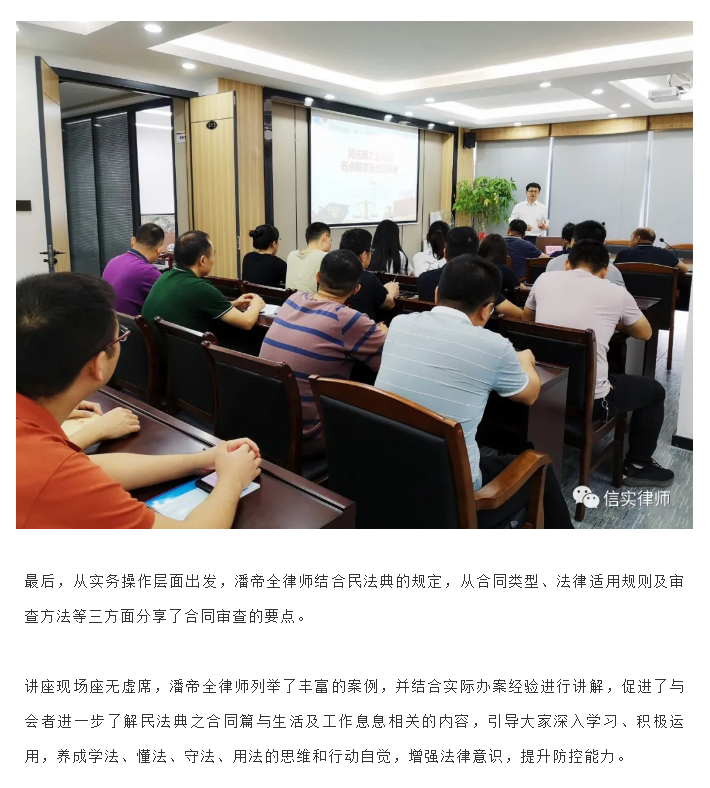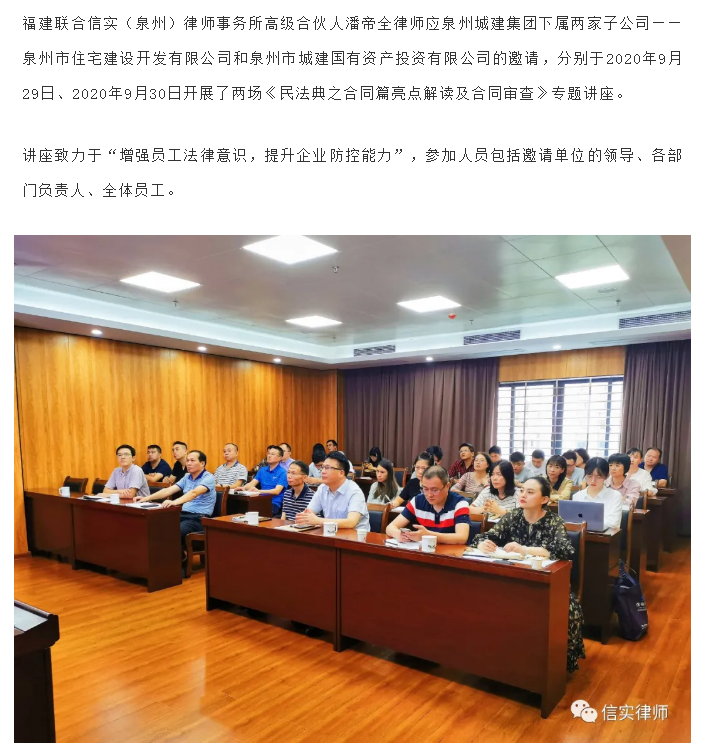 信实泉州分所应邀为泉州城建集团下属两家子公司开展《民法典之合同篇亮点解读及合同审查》专题讲座|信实动态·泉州分所