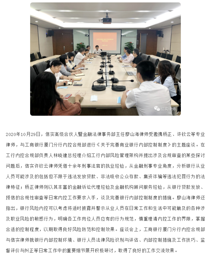 法治国企,信实助力信实为轮渡公司提供专题讲座、与工商银行厦门分行进行主题座谈|信实动态
