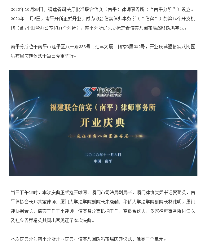 信实南平分所开业,八闽布局战略圆满完成|信实动态·南平分所